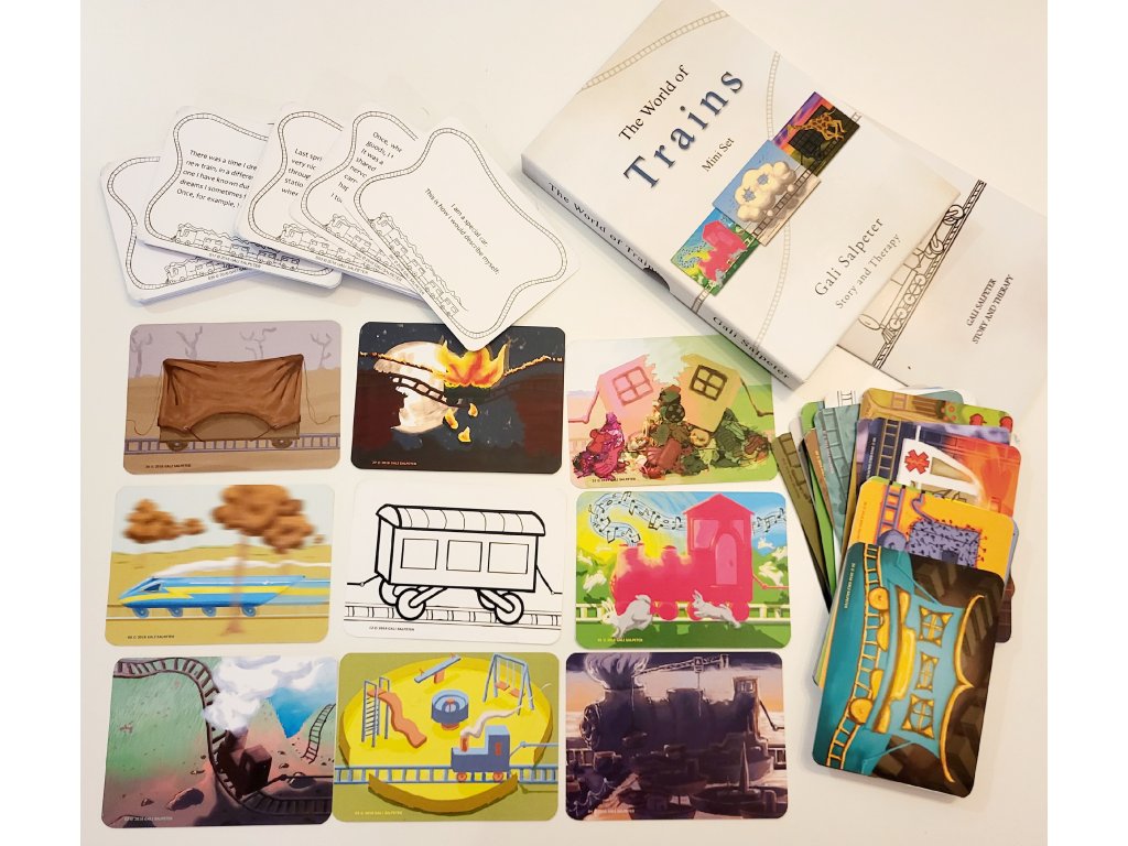 Pokud pracujete s dětskou klientelou, tak tyto karty jistě využijete. Terapeutické karty norské psychoterapeutky Gali Salpeter jsou určeny pro terapeutickou práci s dětmi (individuální i skupinovou terapii). V setu jsou kartičky různých vlaků a vagonků, které jsou součástí příběhu, který dětský klient vypráví.